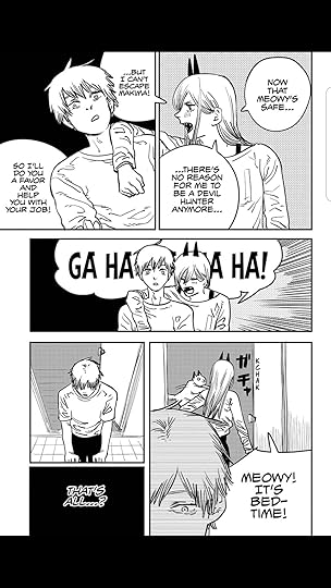 There are aspects of this book I like, but the creator will just not give up on the boob obsession. I thought there was going to be some development in chainsaw-wielding Denji's maturity at first based on his reaction to a dream come true, but the author quickly backtracked and doubled down, having two more female characters manipulating Denji's actions with promises of sexual favors.