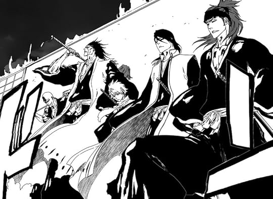 The art style is acceptable and clean, but lacks anything that stands out as memorable. I feel as if the mangaka was going for a Soul Eater-type style, but the emotions plastered on their faces are lacklustre. Here's a shot from the manga versus a shot from Bleach: